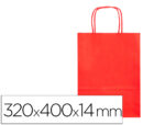 Saco de papel q-connect celulose vermelho l com asa torcida 320x400x140 mm